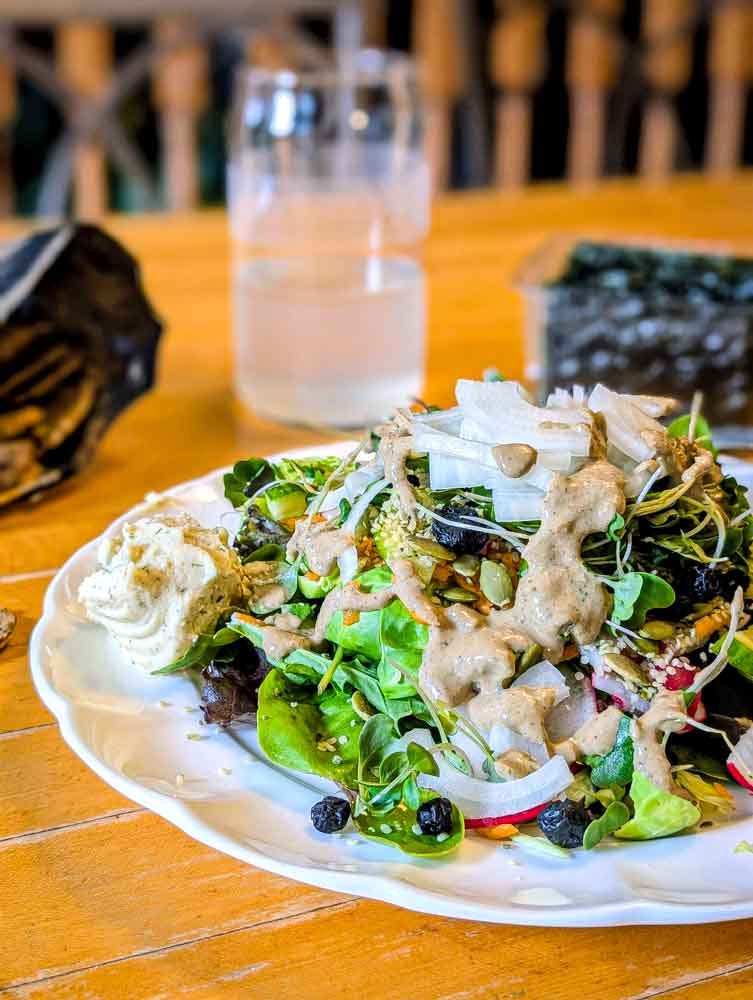 Combine all ingredients in a blender or smoothie cup and purée until smooth, adding a little extra water if needed. Taste and adjust seasoning. The dressing will thicken somewhat upon standing. It’s creamy, tangy, and just sweet enough — the kind of dressing that makes even a humble salad sing.